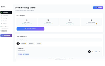 Bellek - Smart Vocabulary Builder é uma extensão gratuita para Chrome projetada para facilitar a construção de vocabulário enquanto você navega na internet. Com recursos como salvamento de palavras com um clique, captura de contexto e rastreamento de fontes, o Bellek permite que você se lembre facilmente das palavras que aprende. A extensão também oferece flashcards inteligentes que utilizam a técnica de repetição espaçada, ajudando na memorização a longo prazo.